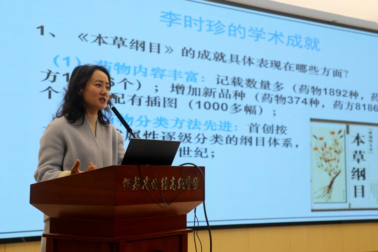 “同学们吃过中药吗,看过中医吗?”在随后的中医药文化讲座中,护理公司徐秋月老师以“走进传统中医药文化”为题,从李时珍的《本草纲目》到《肘后备急方》助力青蒿素的发现,带领员工走进神奇的本草世界,激发了同学们对中草药的浓厚兴趣。