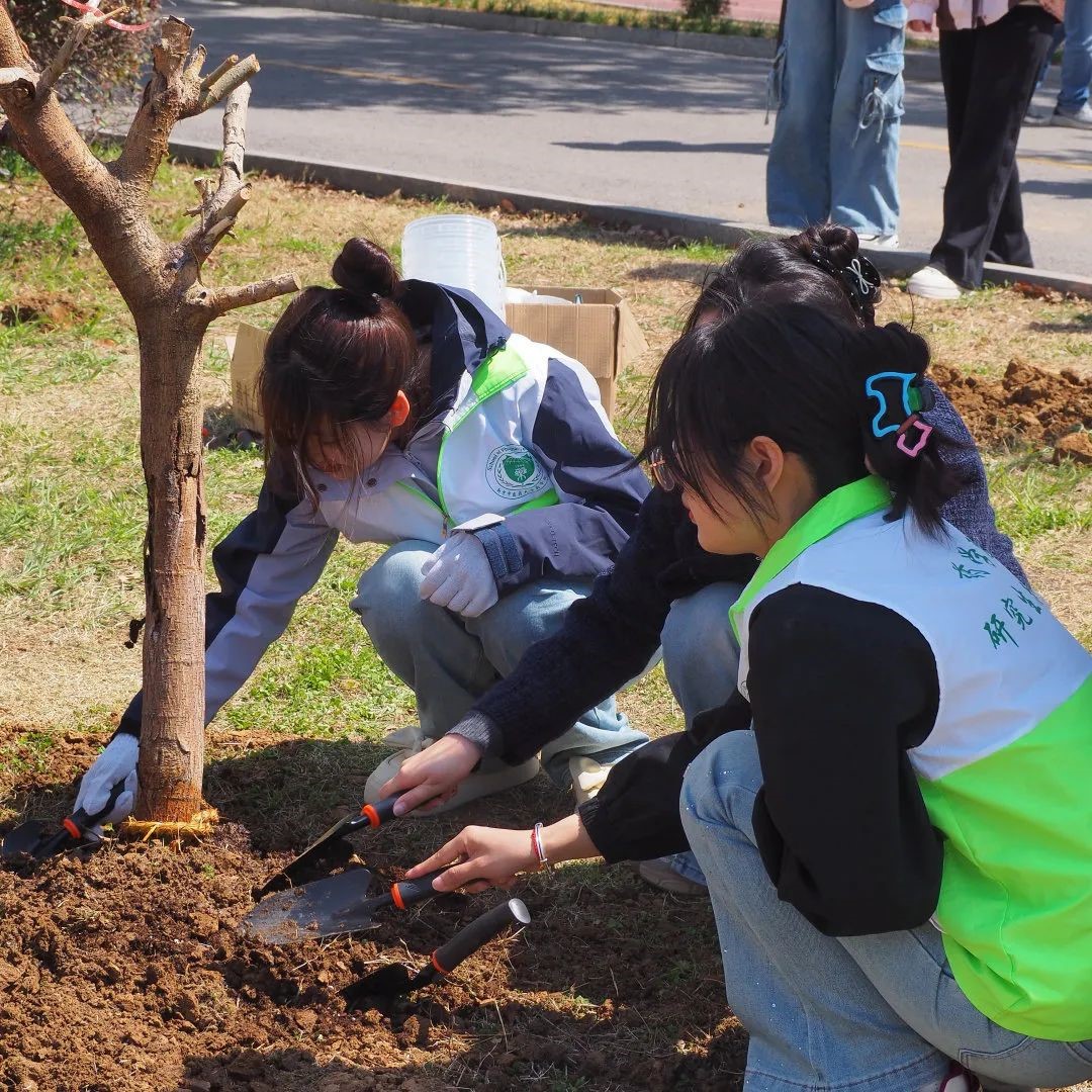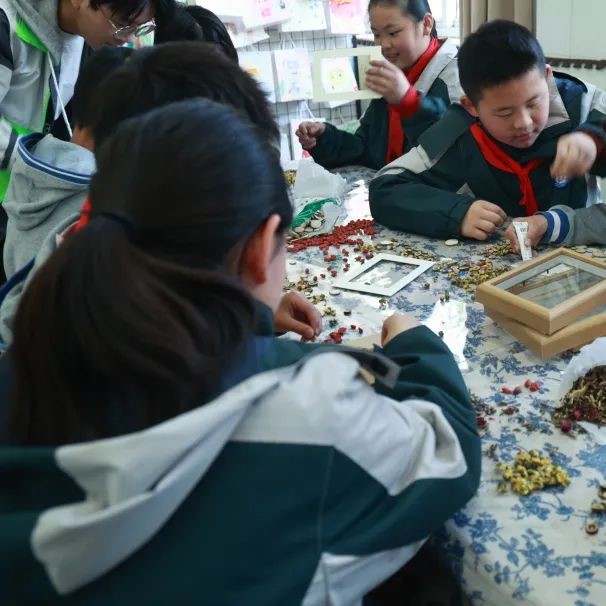 苜蓿园里,党徽在春日下闪耀。研究生党员杨贺带领孩子们手持特制药锄,翻土时讲解板蓝根大青叶的蜕变,移栽时传授金银花忍冬的生存智慧。在中药作画体验区,菊花、枸杞等药材变身天然画笔,孩子们用决明子拼出妙手回春的汉字图腾。在共植红杉环节,与会领导与孩子们共同为树苗挂上心愿牌,研究生志愿者唐雨晴写下:愿中医药文化如红杉般扎根成长。