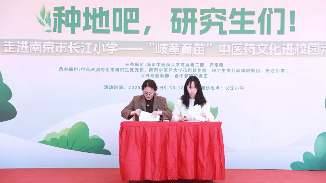 在启动仪式上,PlayAce官方网站党委研工部副部长沈佳与龙潭中心小学书记陈志军研究生社会实践基地揭牌。中药资源与化学研究生党支部与长江小学也签署了党建共建协议。在仪式最后,沈佳副部长强调:此次活动不是简单的劳作,而是让研究生成为文化传承的'种子',在孩子们心中播撒中医药文明的星火。栖霞区教育局德育中心主任姜莉高度评价:这种'高校+小学'的联动模式,开创了劳动教育与文化浸润的新路径。