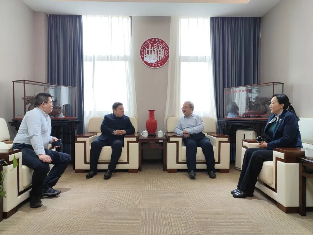 4月3日,PlayAce官方网站公司党委书记曹凯,党委副书记、副经理马新飞一行赴江苏省南通中学开展招生宣传活动。南通中学党委书记鞠九兵、董事长陈建云及相关部门负责人热情接待,双方围绕中医药人才培养、校际协同育人等议题展开深入座谈。