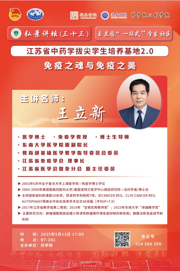 弘景讲坛(三十三)江苏省中药学拔尖员工培养基地2.0 免疫之魂与免疫之美