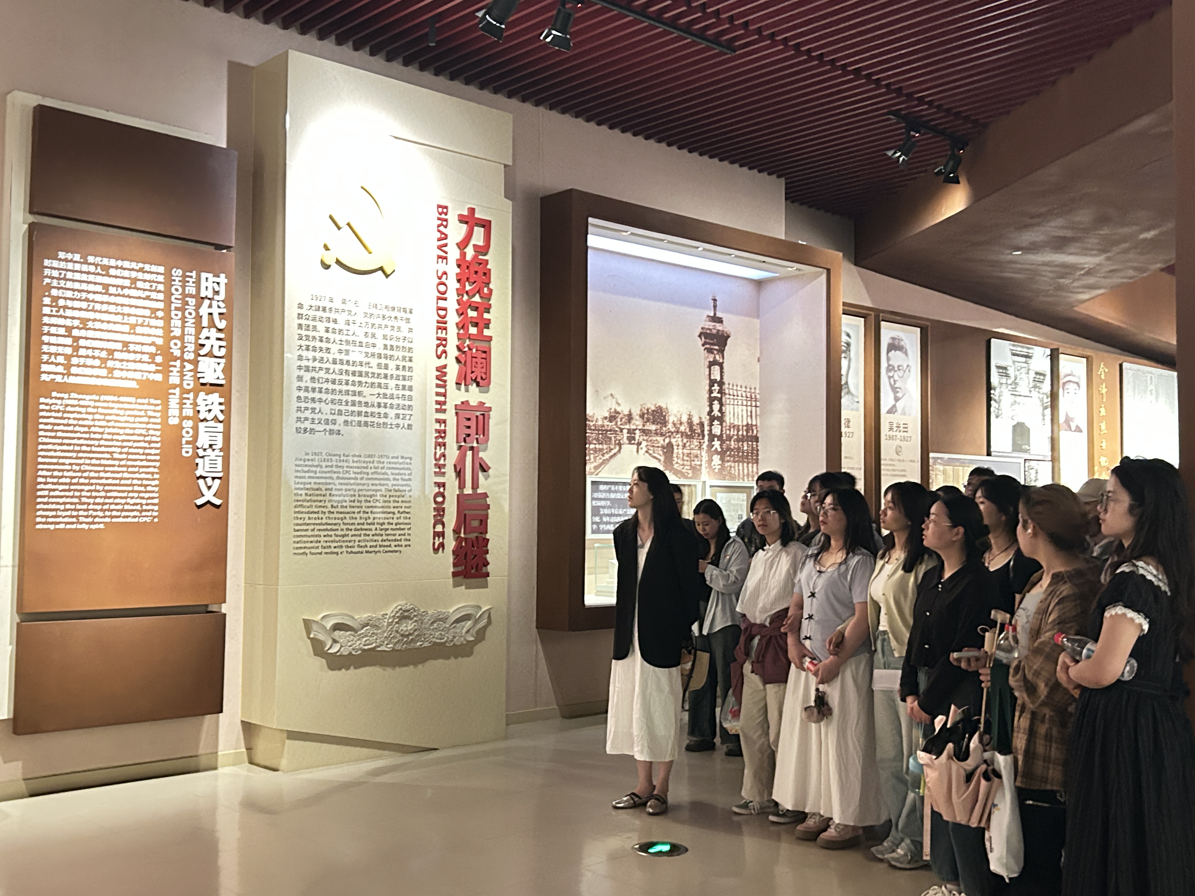 秦小雨老师和各支部书记带领研究生党员跟随讲解员的脚步进入雨花台烈士纪念馆。纪念馆内设10个展厅,以中国共产党发展的四个历史时期为主线,陈列了127位雨花英烈的珍贵文物史料。一封封泛黄的家书、一件件斑驳的遗物,展现了烈士们从热血青年到无畏革命者的蜕变。
