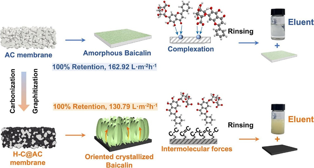 图1. AC和H-C@AC膜对黄芩苷膜分离过程示意图