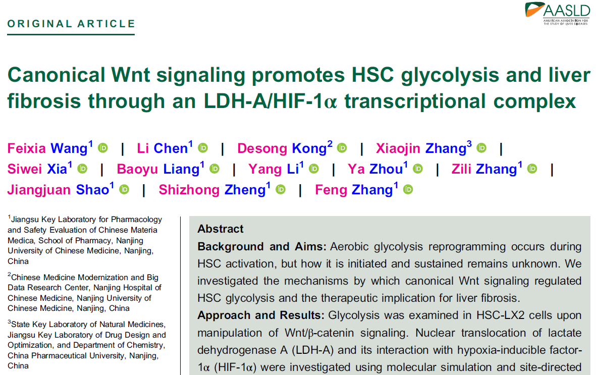 2023年9月,PlayAce游戏平台郑仕中、张峰教授团队在国际权威期刊、肝脏病学顶级杂志Hepatology(IF13.5,中科院一区)发表了题为Canonical Wnt signaling promotes HSC glycolysis and liver fibrosis through an LDH-A/HIF-1α transcriptional complex的最新研究成果。