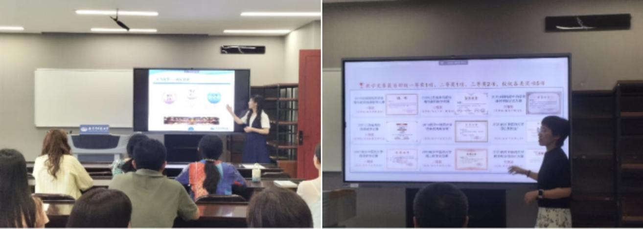 陈瑶老师以参赛的教学内容“质子泵抑制剂——奥美拉唑”为例,分享了参赛的心得体会,并对其中三个核心要素进行了详细介绍。教学设计应融合思政,精心设计每一个教学环节,课件制作要图文并茂,教学过程要同板书相结合。韩疏影老师结合参加江苏省青教赛的比赛经历,选取了一个代表性教学单元,深入剖析了教学设计的核心理念,生动展示了教学内容组织,激发了与会教师对课堂教学改革的深入思考和热烈讨论。