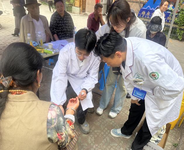 8月8日下午,服务实践团联合昌都团市委医疗志愿服务队走进启赤社区。南中医中医骨伤科学博士研究生王资涵现场坐诊,精准诊疗为村民驱散高原病痛。与此同时,王资涵与现场的藏医院员工相互交流经验,一边施针,一边向藏医院员工讲解手法要领,社区近30余名群众接受诊疗,现场还同步开展中医药文化宣讲、民族团结互动,气氛热烈。王资涵的父亲十年前也曾担任过援藏医生,这一次也是他再续父亲援藏的十年之约。