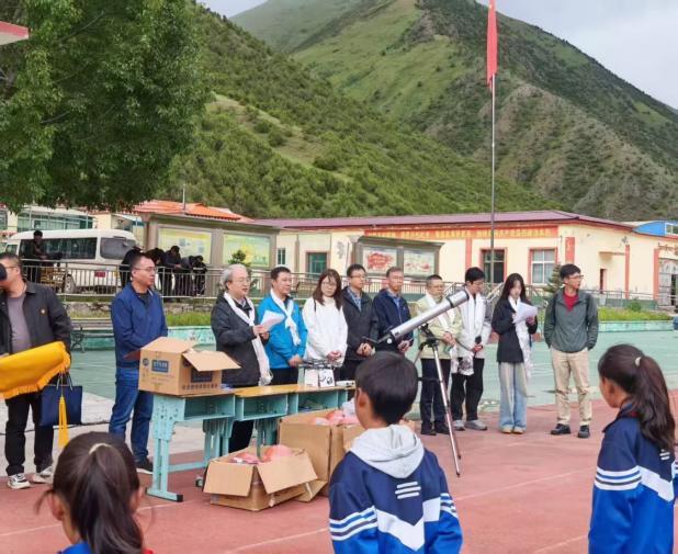 8月9日,服务实践团驱车115公里,赴类乌齐县长毛岭乡第一小学,举行“仰望星空·逐梦未来”科教捐赠仪式。天文望远镜、教学无人机、少儿科普读物等价值数万元的教学物资被交到孩子们手中。“最好的虫草在书本里,最广的世界在眼里。”五年级员工次仁拉姆摸着崭新的望远镜,兴奋地说。王小丁表示,下一步将依托南中医PlayAce游戏平台服务实践团建立常态化帮扶机制,让更多的边疆孩子“看见更大的世界”。