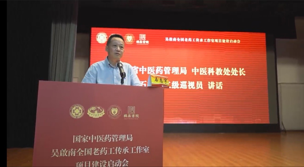 开幕式上,江苏省卫生健康委员会中医科教处处长石志宇二级巡视员致辞。石志宇首先对工作室的启动表示热烈的祝贺,并强调了老药工在中医药传承发展中的重要地位。他指出,老药工是传统中医药的活化石,掌握着各种传统技艺,象征着“仁心仁术”“师徒相授”的行业传统。新时期,传承好、运用好、发展好中药,尤其是中药鉴定的传统技艺,不仅是推进健康江苏和中医药强省建设的本质要求,也是时代赋予我们的光荣使命和重大任务。
